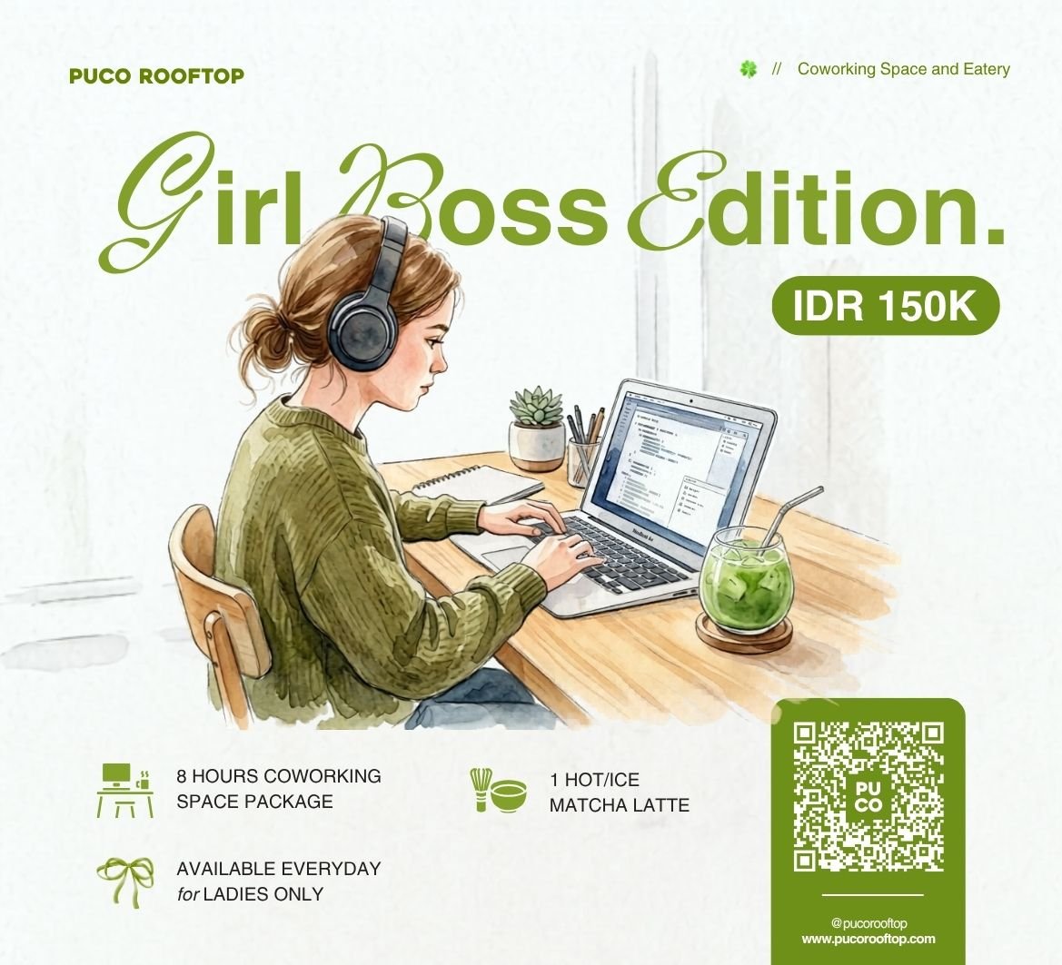 PUCO Coworking Space in Bali offers a calm atmosphere, reliable high-speed WiFi and comfortable indoor seating—perfect for freelancers, remote workers, and anyone who needs a productive space to get things done.